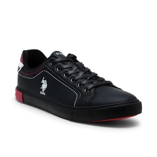 The Joey Men’s “Joan” sneakers by U.S. Polo Assn. are stylish, casual lace-up shoes designed for everyday use. They feature a panelled PU upper with the brand’s subtle logo detail, a round toe, and central lacing, offering a clean and modern look. The padded collar and reinforced heel counter enhance comfort and support, while a cushioned insole and textured rubber outsole provide all-day wearability and grip.